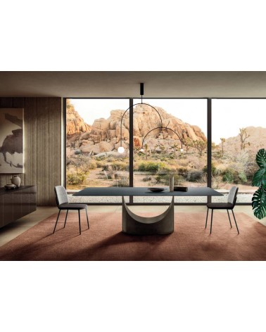 El arco, invención arquitectónica atemporal, resulta aquí volteado para ser basamento que mantiene suspendido un tablero ligerísimo. Esta es la Mesa U, una mesa de líneas sobrias que ambiciona devolver modernidad a las formas clásicas. El tablero, en dos diferentes formas y tres tamaños, es personalizable con sugestivos acabados, mientras que la base está disponible en metal en los colores titanio y peltro.