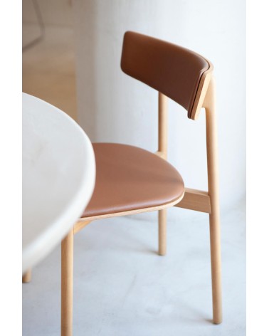 La silla Kol Madera tapizada, diseñada por Ibon Arrizabalaga, es la versión con estructura de madera y asiento tapizado de la colección Kol. Su diseño combina la calidez del roble natural con la suavidad del tapizado, ofreciendo una pieza cómoda, elegante y versátil. Ideal para hogares y espacios contract que buscan un equilibrio entre estética y funcionalidad.