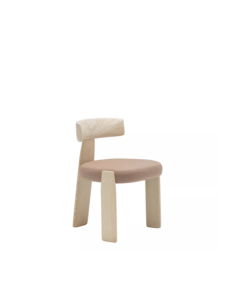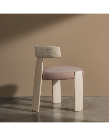 Silla con asiento tapizado o asiento y respaldo tapizado y estructura de madera maciza de fresno.
